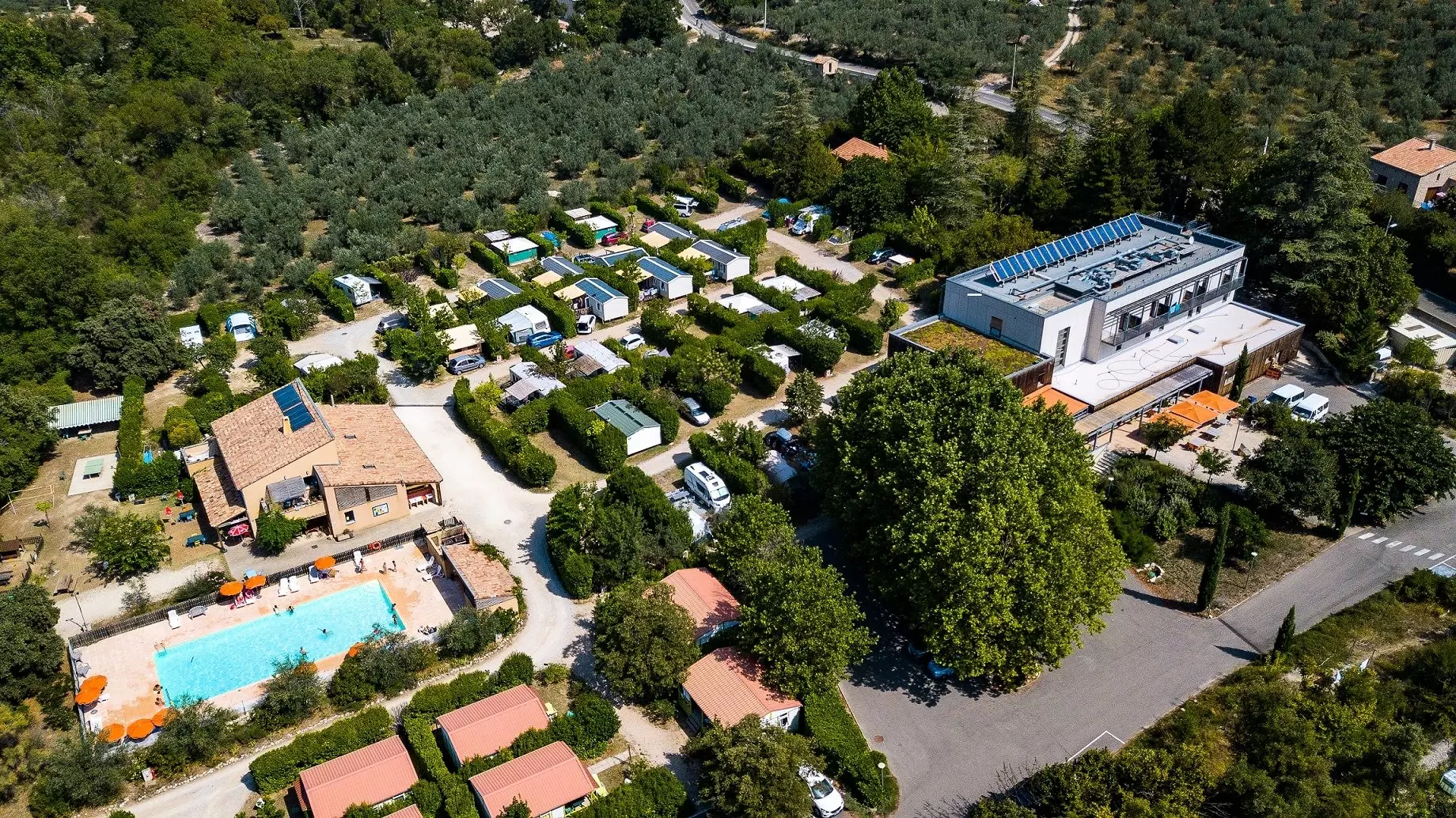 In the heart of the Provençal Baronnies, La Fontaine d'Annibal welcomes you to a green setting not far from Mont Ventoux. On the banks of a river and 800 metres from the centre of Buis les Baronnies, the holiday village includes a holiday residence and a 3-star campsite. All year round, we offer full board, half board or rental of flats, mobile homes, bungalows and unique riverside accommodations.